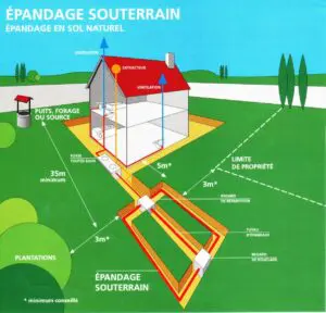 Een volgens de normen van 2005 goedgekeurde niet-collectieve installatie bestaat meestal uit: een voorverwerkingsstation (o.a. vetafvangbak), een hoofdverwerkingsstation (meestal een septic tank (fosse septique in het Frans) waarin afvalstoffen worden afgebroken door anaerobe bacteriën) en een uitvloeiveld voor langzame infiltratie en naschoonmaak in de grond van het water uit de fosse septic. Verder moet er een ventilatiesysteem zijn aangebracht en gemakkelijk toegankelijke kijkgaten. Een van de duurste posten in deze installatie is de fosse septique en een onderbemeten fosse septique vereist vaak een nagenoeg complete vervanging (of installatie van een tweede tank). De capaciteit van de fosse septique wordt zo bepaald: 1 m3 per slaapkamer, met een minimum van 2 m3, zelfs als uw vakantiehuis maar een paar weken per jaar wordt gebruikt.