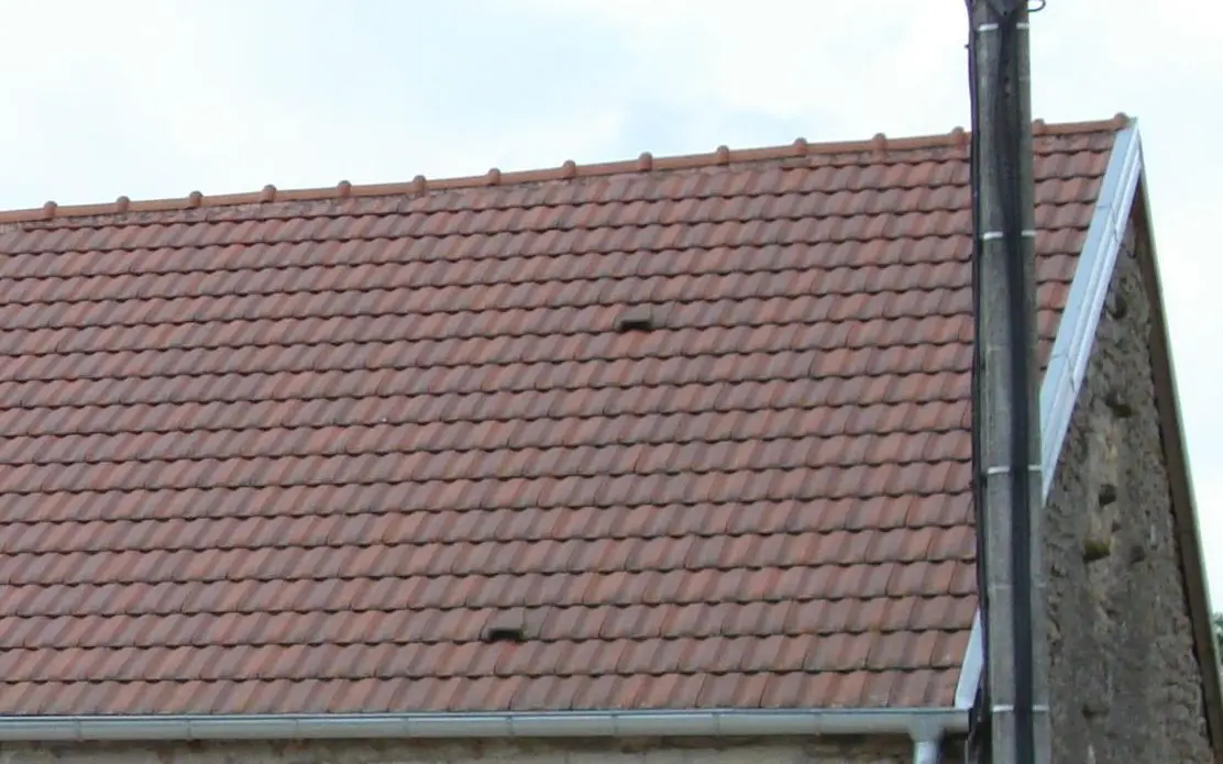 Dakpannen gaan, afhankelijk van het soort klei en het bakprocédé, meestal niet langer dan 60 of 80 jaar mee. Dan zijn zij bros en breken bij de geringste belasting. En als de ondersteunende constructie doorgezakt of hier en daar gebroken is, bestaat een reële kans dat de pannen niet meer goed op elkaar aansluiten – ook dit veroorzaakt lekkage, ook al is het nog niet zo erg als op afbeelding1. En wat te denken als men bij vroegere reparaties pannen met een nét iets ander profiel dan het originele gebruikt heeft? Dan is de onderlinge aansluiting zeker niet perfect. Op ons dak heb ik zeven verschillende soorten dakpannen geteld. Ze leken wél allemaal op elkaar, maar hadden toch kleine afwijkingen in hun randprofilering (les emboitements, cannelures ou rainures).