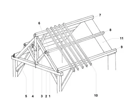 Hier volgt een uitleg over de elementen van een dakstoel, de vormgeving en functie.