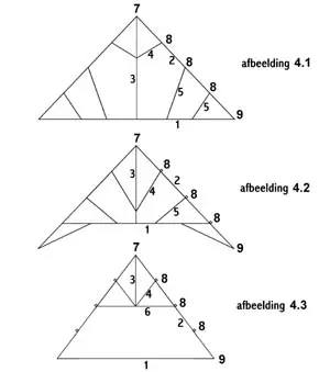 Contre-fiches zitten daar waar les pannes liggen, en hun verlengden ontmoeten elkaar op een gemeenschappelijk punt op of onder de basis van het spant. Zie afb. 4.1 en 4.2.