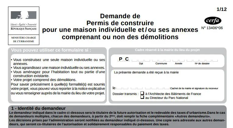 (4) De diverse formulieren kunt u eenvoudig downloaden op de website Service-Public, dit is het formulier voor de permis de construire.