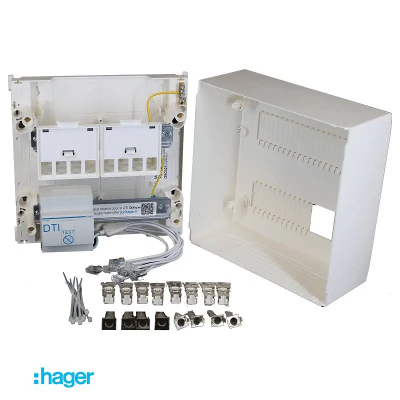 Dat volgens de normen verplichte tableau de communication betekent overigens wel dat u verplicht bent een bedraad communicatienetwerk aan te leggen, naar alle kamers in huis. Met de bekende acht-aderige ethernetkabel. Niet losjes over de grond of aan de muur met zadeltjes vastgespijkerd, maar in elektrapijp of een goulotte. Aansluiting van apparatuur – telefoon, internet, tv signaal – gaat via op het eerste gezicht heel vertrouwd uitziende RJ-45 aansluitingen. Alleen heeft de Franse wetgever gemeend daar een eigen “pintoewijzing” voor te moeten bedenken. Daar valt mee te leven, totdat je de in snel tempo bijna standaard geworden 1 Gigabit apparatuur er op wilt aansluiten. Dat communicatieprotocol maakt gebruik van alle vier de aderparen die een ethernetkabel rijk is. En zou er op zo’n naar Franse regels aangelegde prise RJ-45 ook nog een ouderwets analoog telefoonsignaal worden aangeboden, dan zou een daarop aangesloten laptop wel eens de geest kunnen geven wanneer de telefoonbel rinkelt. Want op dat moment staat er ongeveer honderd volt op de twee telefoondraadjes. Een gewaarschuwd mens telt voor twee, dus het verstandigste is om dan meteen maar een gaine met een iets grotere diameter (25 mm) aan te leggen, dan kunt u er twee ethernetkabels in kwijt. Ander voordeel: het trekken van ethernetkabel gaat toch wel wat stroever dan met glad elektradraad, hoe meer ruimte, hoe beter. Eén kabel voor het gewone werk inclusief een 100 Mbit netwerkaansluiting, en de andere gereserveerd voor een Gigabit aansluiting. Het tv signaal mag trouwens ook via gewone coaxkabel naar de plaats van bestemming worden getransporteerd. Voor een overzicht, hoe aan de minimum eisen te voldoen met een eenvoudige opstelling tot en met de echte multimedia toepassingen zijn de tekeningen op de website van bis-electric zeer inzichtelijk. Legrand laat zien hoe dat er dan in de groepenkast (GTL) uit kan komen te zien. De leidingaanleg – gewone telefoon bedrading, ethernet en coax – wordt hier beschreven.