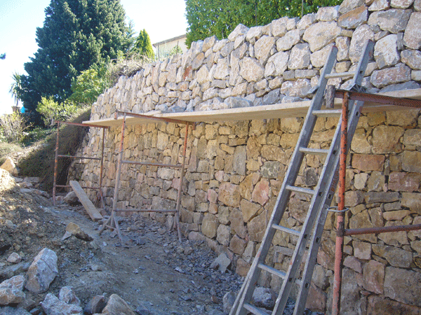 De steunmuren van deze ‘terrassen’ worden normaal als droge muren (murs secs) uitgevoerd, zelden als gemetselde (en nooit gebetonneerd, uitzondering: wegenbouw). Gemetselde muren moeten zeker een afwatering hebben, maar ook bij droge muren is deze aan te raden.