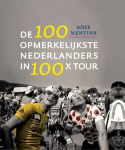 De 100 opmerkelijkste Nederlanders in 100 x Tour. Rose Mentink. Uitg. Tirion Sport. ISBN 9789043915076 (€ 19,95). De Tour de France die deze zomer voor de honderdste keer wordt verreden, is voor wielerjournaliste Rose Mentink aanleiding geweest om honderd korte verhalen/anekdotes te schrijven over Nederlandse deelnemers aan deze koers, wielrenners vooral, journalisten en anderen. Enkele namen: Cor Vos, wielerfotograaf (73e plaats), Erik Breukink (70e plaats), Dries van Agt (69), Jan Cottaar (66), Kees Pellenaars (65), Johnny Hoogerland (60), Wout Wagtmans (54), Michael Boogerd (51), Mart Smeets (40), Hennie Kuiper (30), Jean Nelissen, journalist (19), Jan Janssen (15), Wim van Est (11), Peter Post (7), Gerrie Knetemann (6), Joop Zoetemelk (2) en Jan Raas, ‘de onzichtbare kracht achter het Nederlandse wielrennen’ (1). Hollanders rijden nog geen tachtig jaar mee, schrijft Rose Mentink in de inleiding van het zeer fraai vormgegeven boek met de 100 meestal bijzondere foto’s van de geportretteerde Nederlanders. ‘We hebben tot en met de Tour van 2012 166 etappes gewonnen waarvan de meest recente helaas al weer dateert van 2005. ‘Bijna winnaars’, die hadden we wel vaker.’ Het boek, zeker ook de moeite waard voor niet-wielrenliefhebbers, toont ook een beeld van de mensen achter de renners, de meesterknechten, ploegleiders, verzorgers, mecaniciens en zelfs koks. En dan de verslaggevers en commentatoren en vooral ook het publiek. Mentink schrijft juist die verhalen te hebben opgeschreven die haar verwonderden. Aardig is nog de documentatie die bij elke beschreven Nederlandse tourrenner wordt verstrekt, zoals het aantal starts, aantal keren uitgereden, eventuele etappezeges en hoogste plaats in het eindklassement.