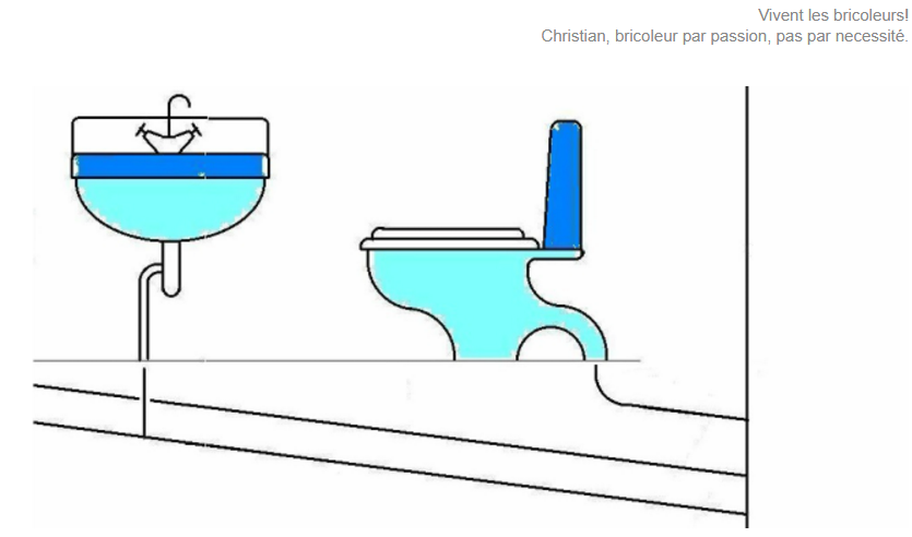 En steeds eraan denken: De WC-uitlaat heeft in Frankrijk 100mm, de standpijp 125 mmø; de in Nederland gangbare diameter 110 is in Frankrijk niet gebruikelijk. Er blijken wél verloopstukken tussen 100 en 110 mmø te bestaan (www.nicoll.fr), maar die vind je bij een gewone Brico niet.